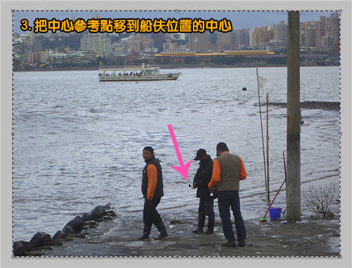 3. 中心參考點的位置很重要,他決定了圖片內容改變的比例。人是這張圖片的重心,所以把參考點移動到他們的位置上。