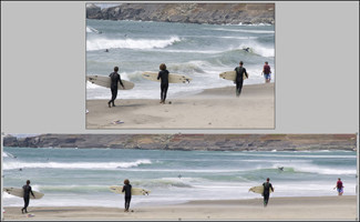 「內容感知比率」是 Adobe Photoshop CS4 的一項新功能,主要的目的是讓使用者在某些不適合利用裁切的情況下,達到完美的圖片尺寸的縮放。這樣講有點模糊,舉個例子!比方說你拍的照片是橫幅的,美工安排的版型卻是直幅的,裁切的確是可以完成部分問題。但圖片中某些重要的人物或地標不適合被裁切掉,那最後就可以靠這招來扳回劣勢了!